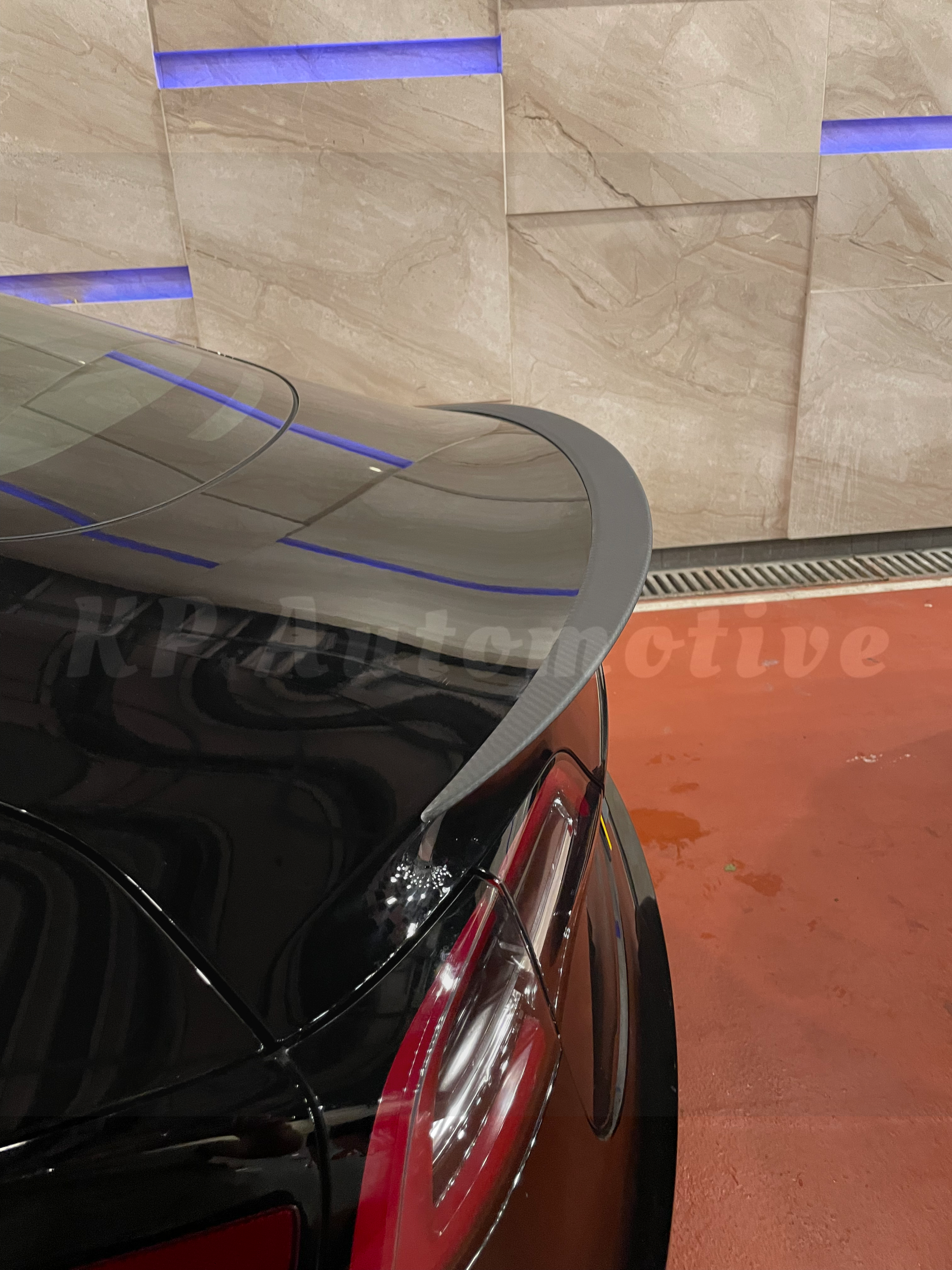 Introducing the KPA Model 3 Matte Carbon Performance Style Spoiler finished in matte carbon fiber. Full autoclaved dry carbon spoiler with a perfect fitment for the Tesla Model 3. The style of this spoiler is similar to the OEM spoiler on the Model 3 Performance.
