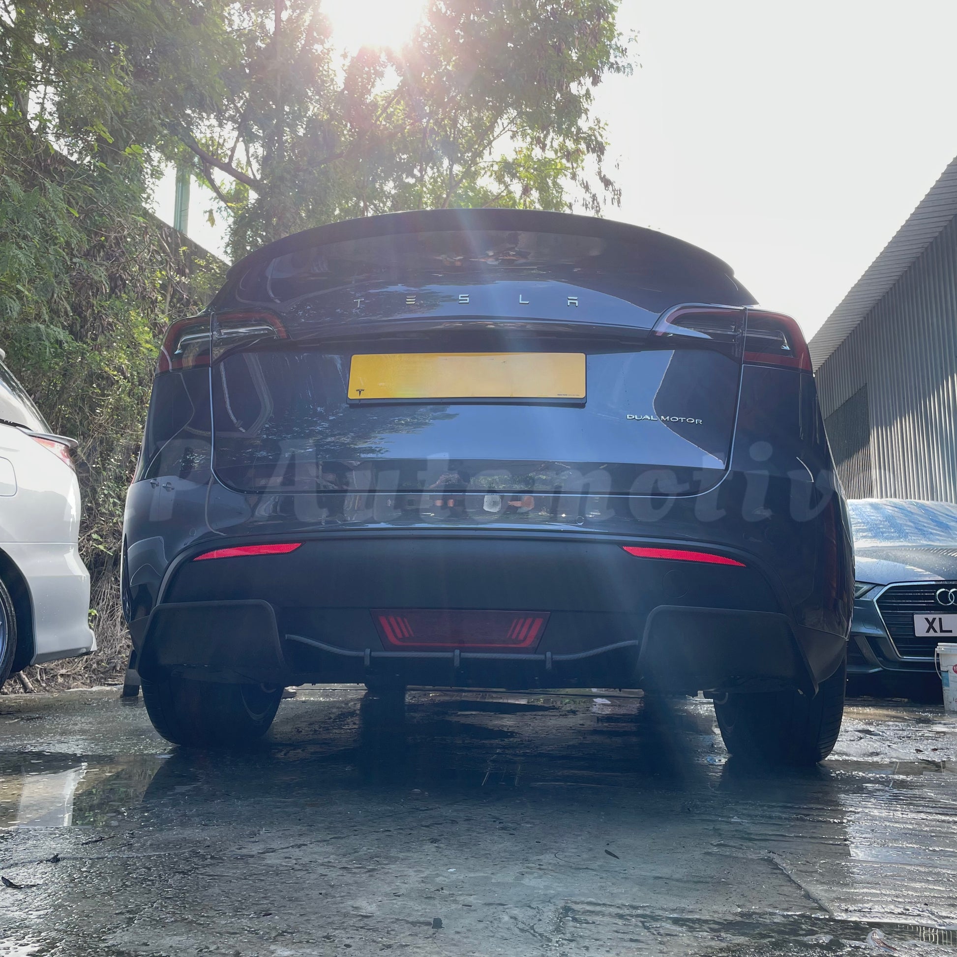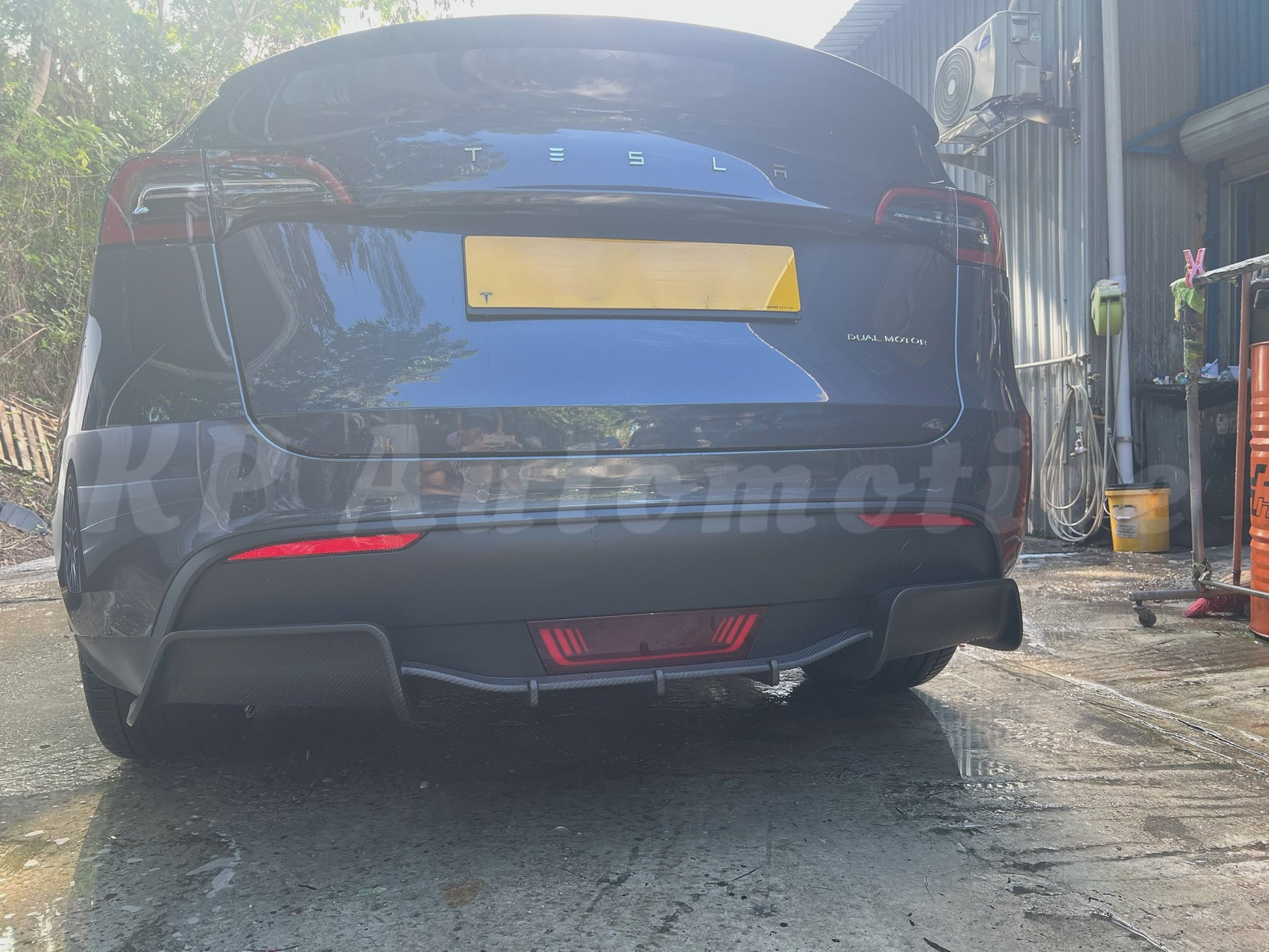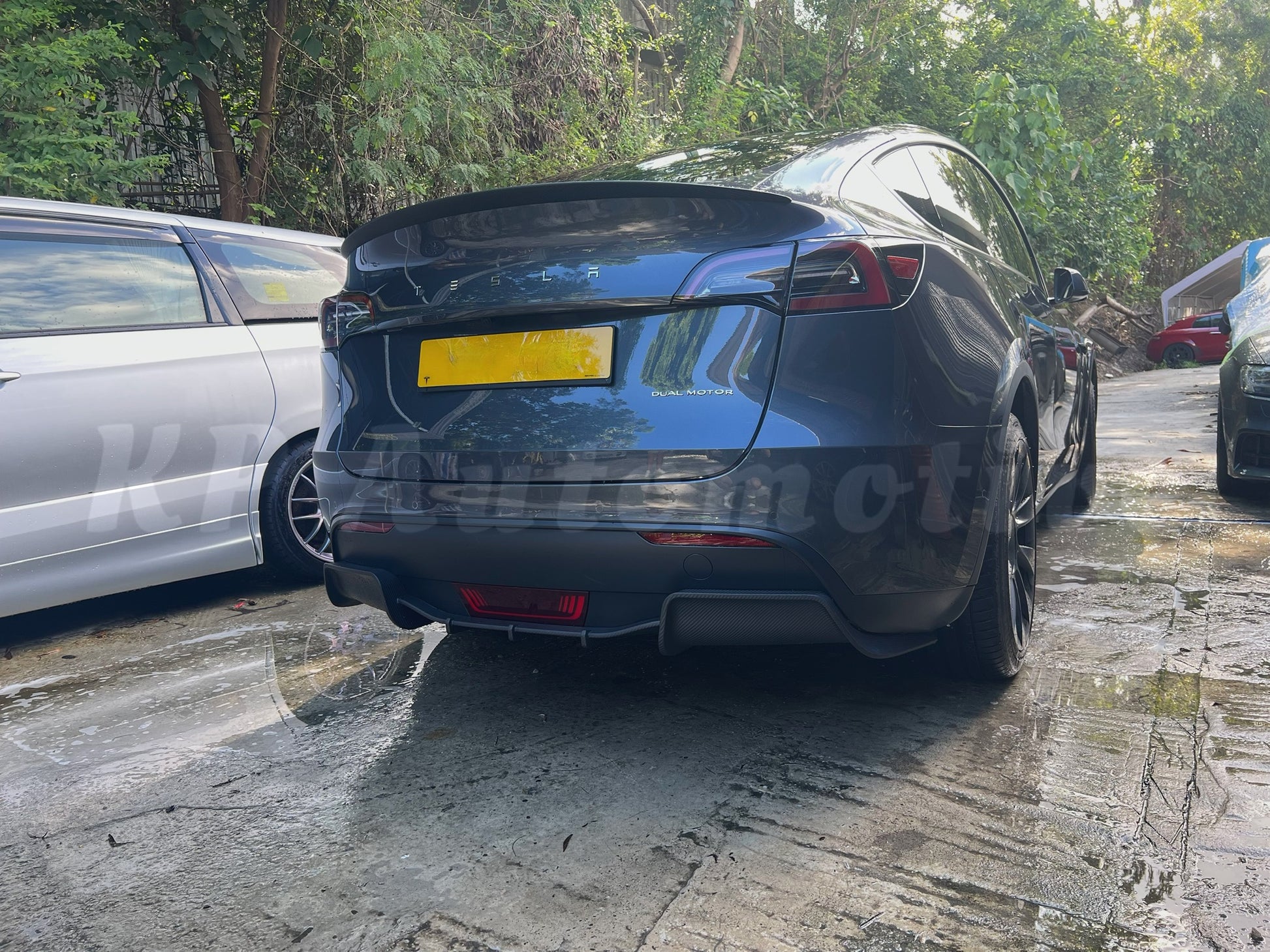 KPA Model Y Dry Carbon Diffuser. Give the rear of the Model Y a more sporty look with this dry carbon diffuser. Made of pre-preg carbon fiber with a matte finish.
