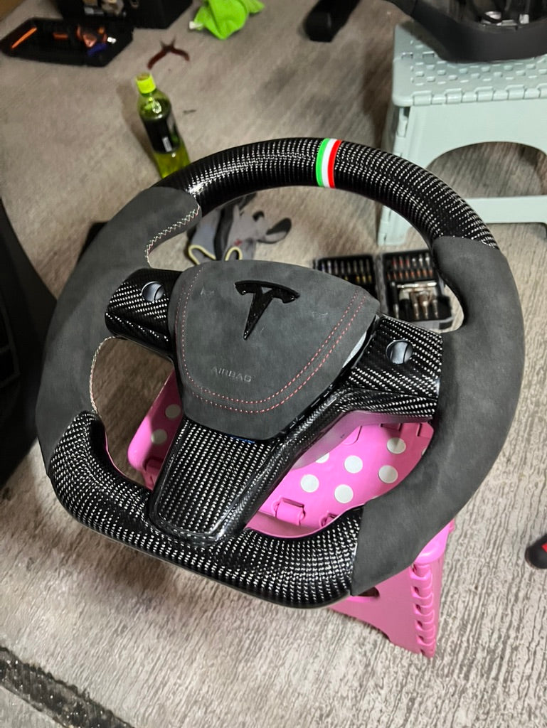 Model 3 Gloss Carbon Fiber Steering Wheel (Alcantara) - Full Set