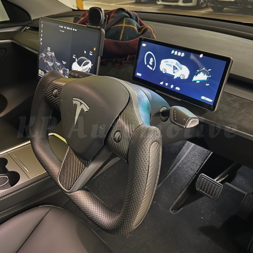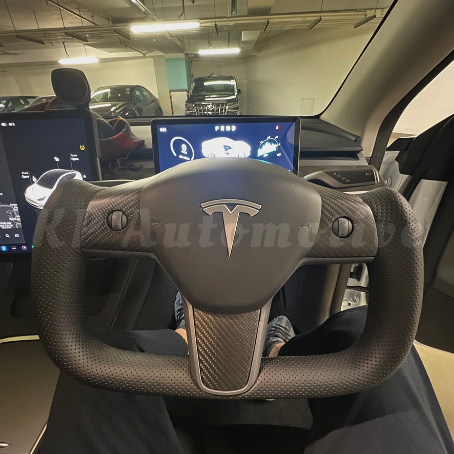 Model 3/Y Matte Carbon Fiber Yoke Steering Wheel (Perforated Leather)