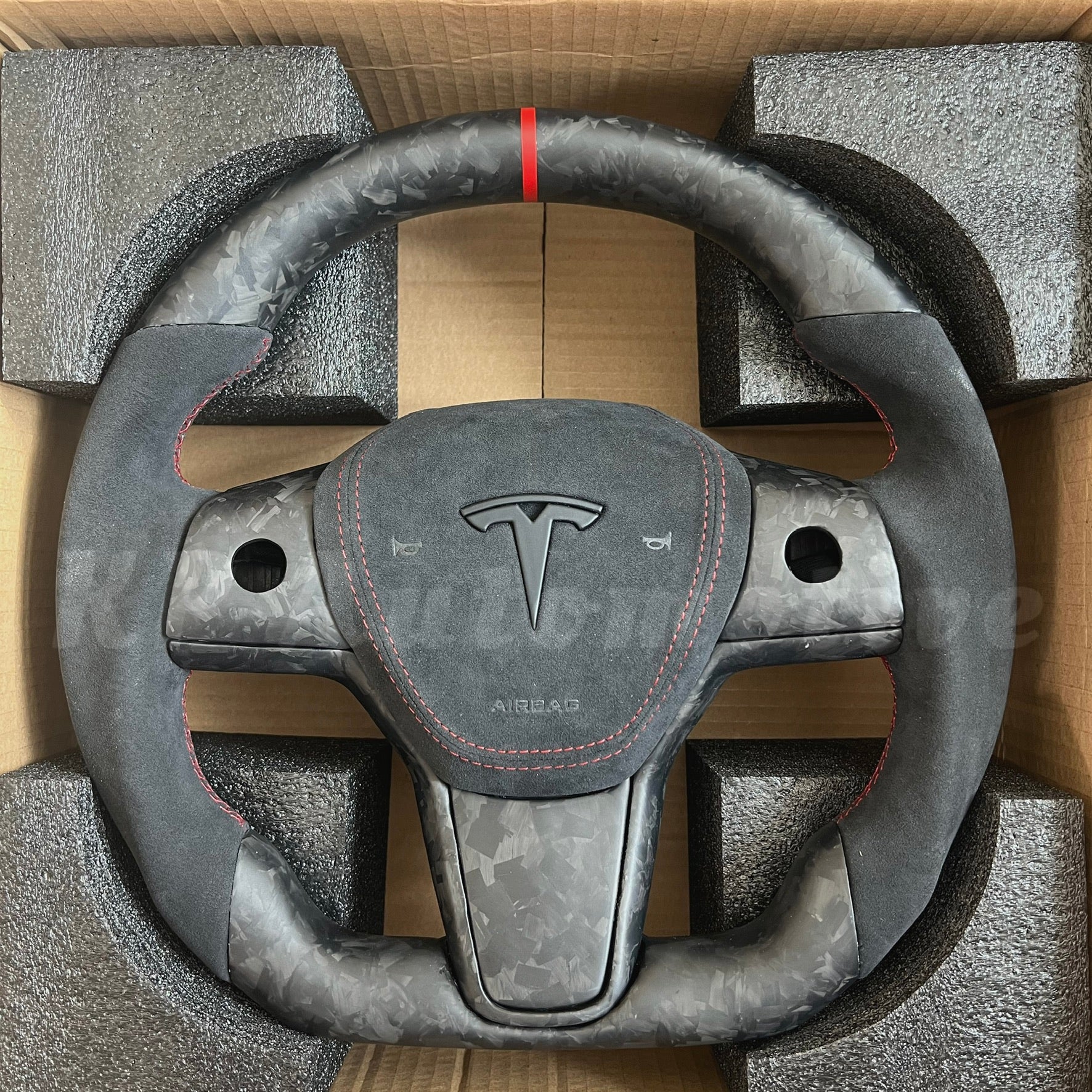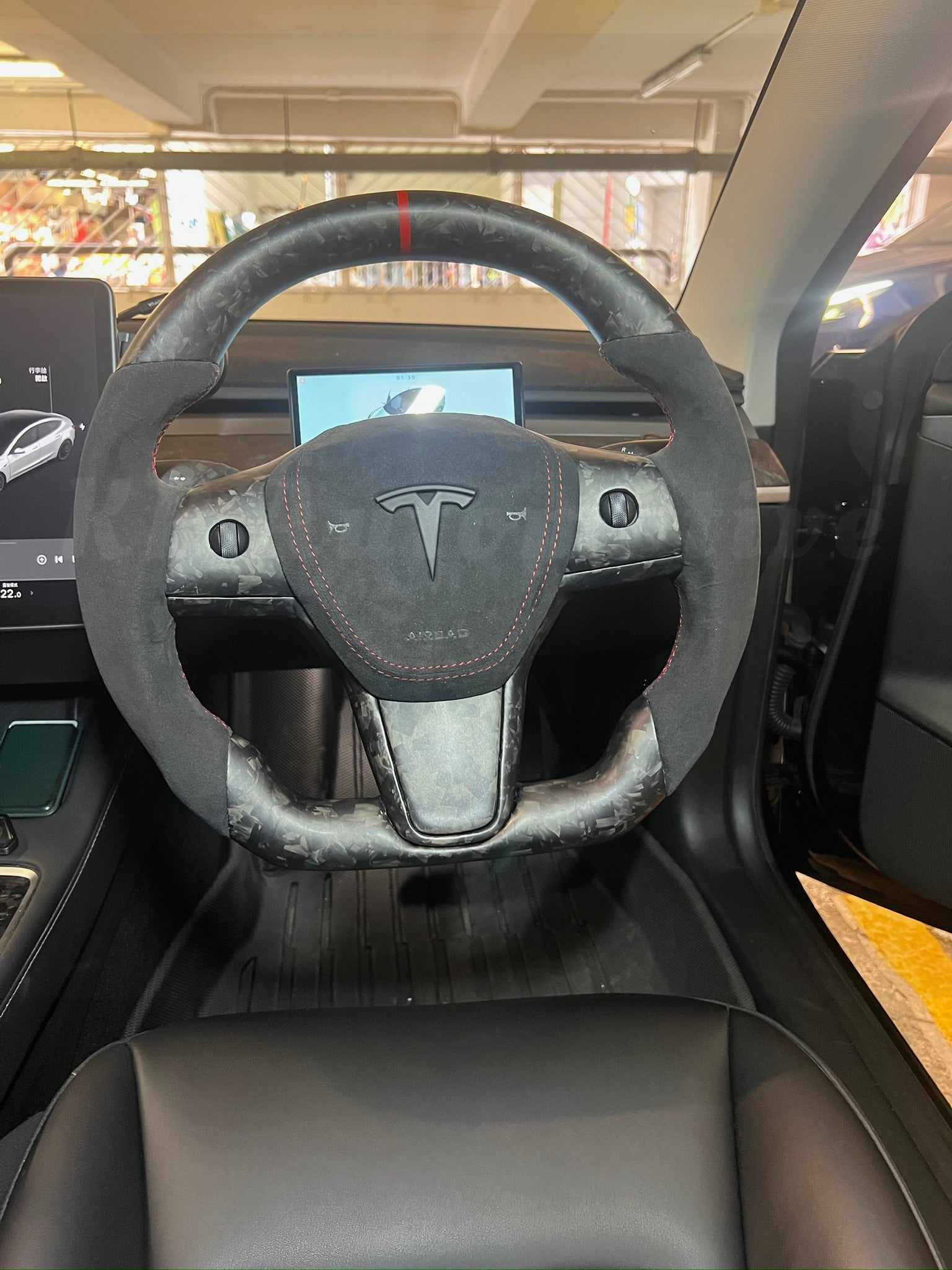 Model 3 Matte Forged Carbon Steering Wheel (Alcantara) - Full Set