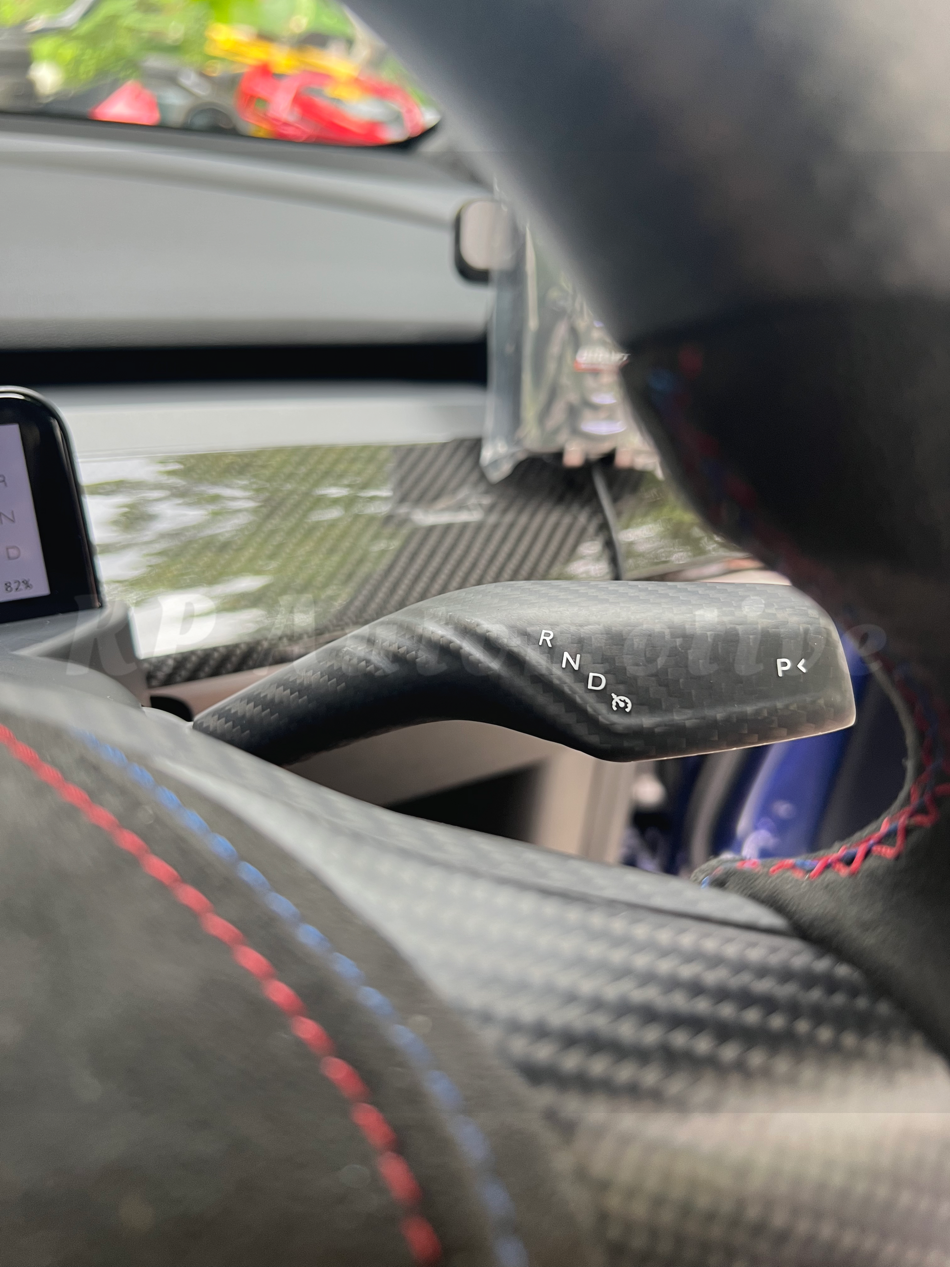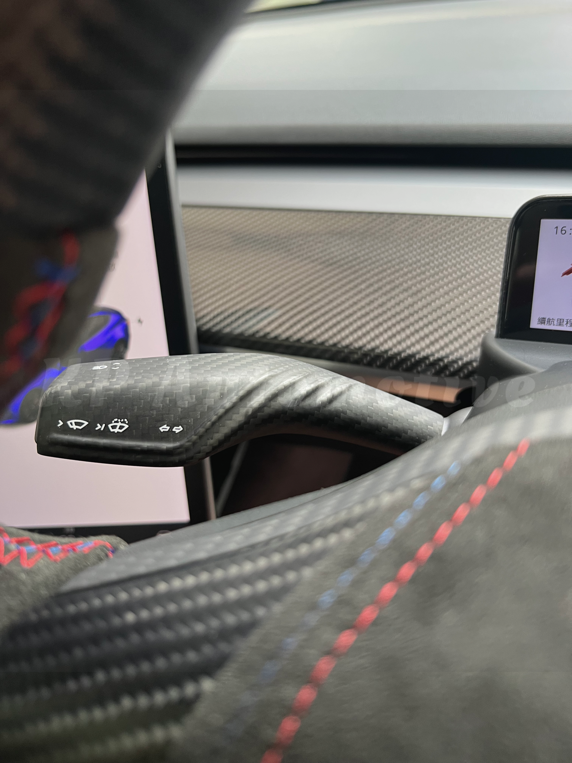 Dry carbon fiber turn signal stalk cover for Model 3/Y.
