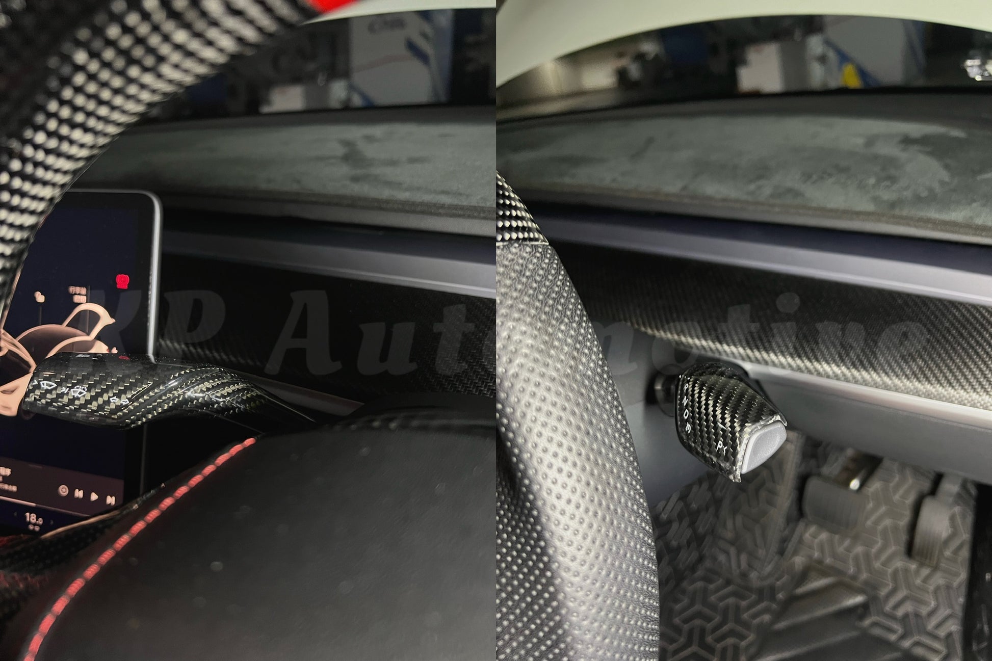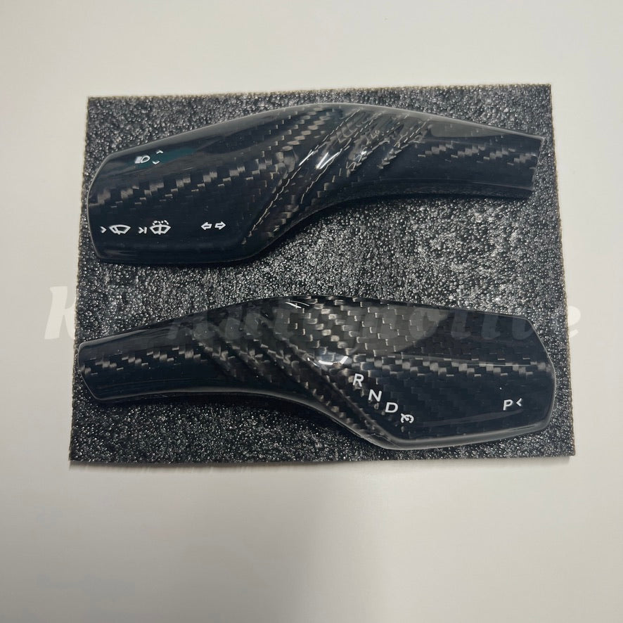 Dry carbon fiber turn signal stalk cover for Model 3/Y.