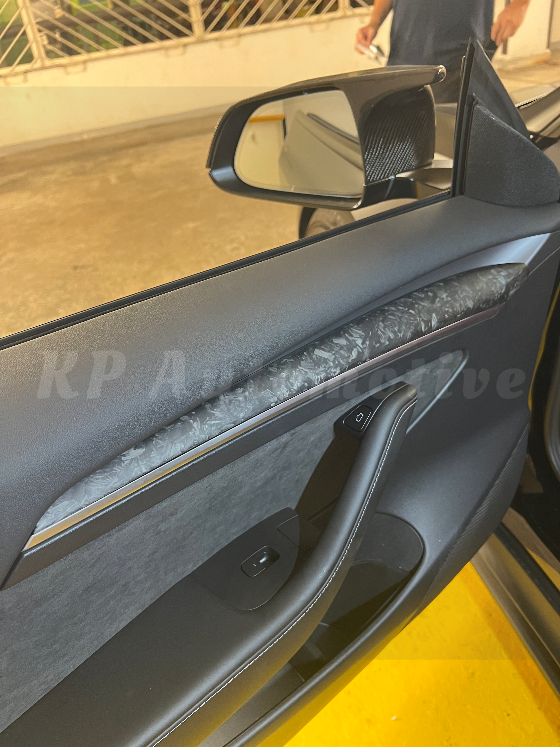 Model 3/Y Matte Forged Carbon Fiber Dashboard and Front Door Trim Panel Replacement Kit