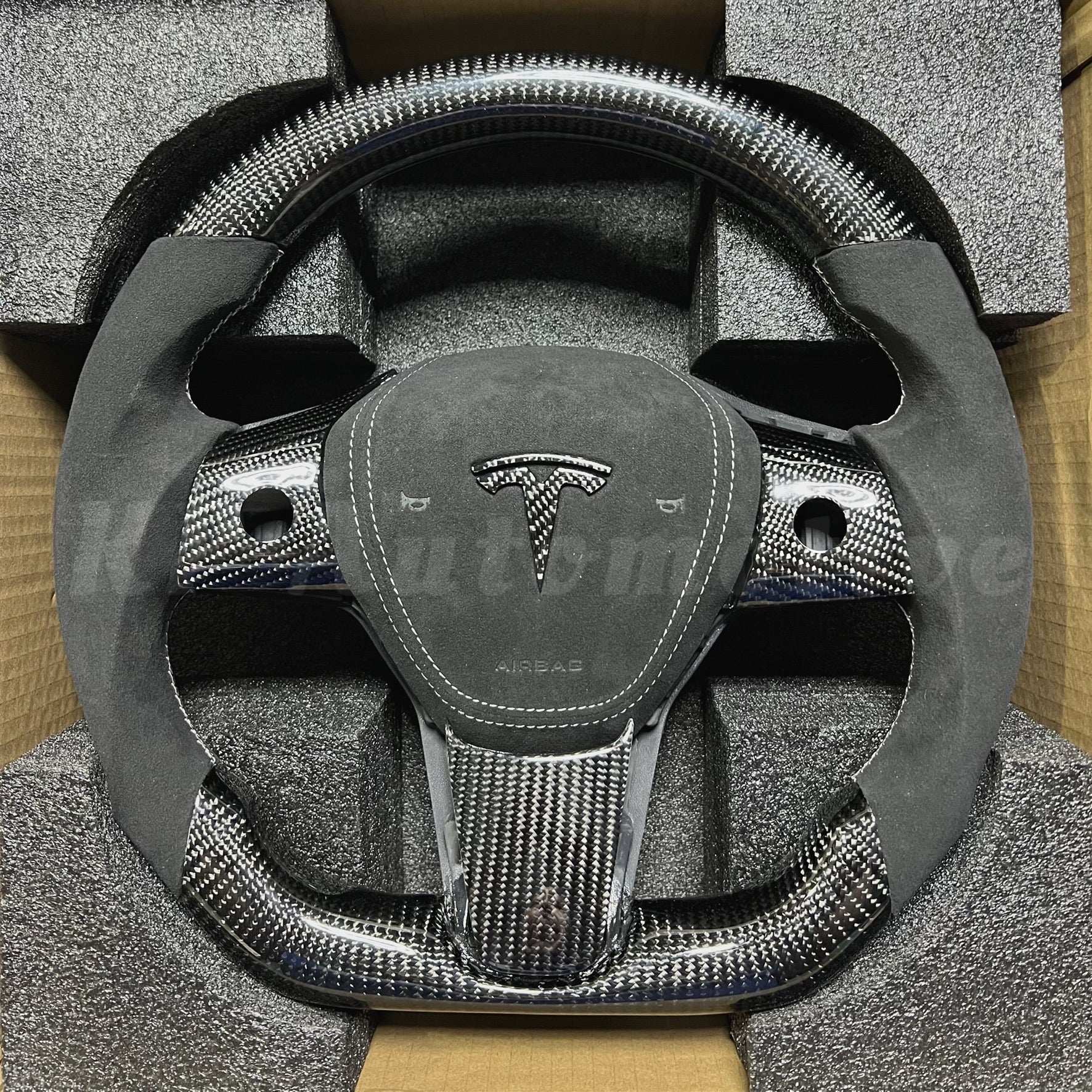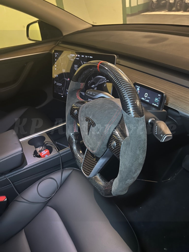 Model Y Gloss Carbon Fiber Steering Wheel (Alcantara) - Full Set