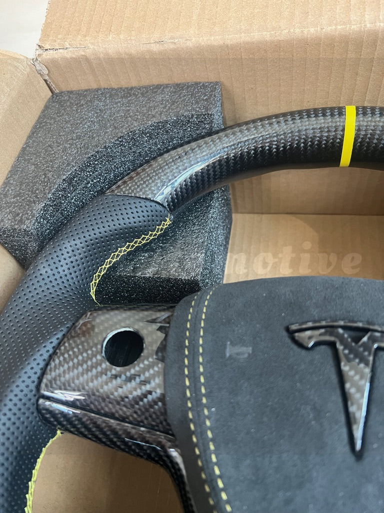 Model Y Gloss Carbon Fiber Steering Wheel (Perforated Leather) - Full Set