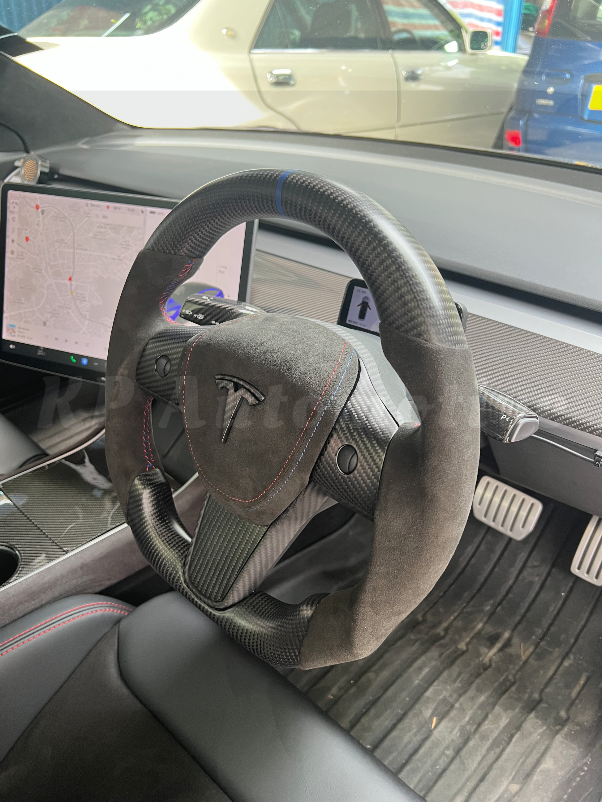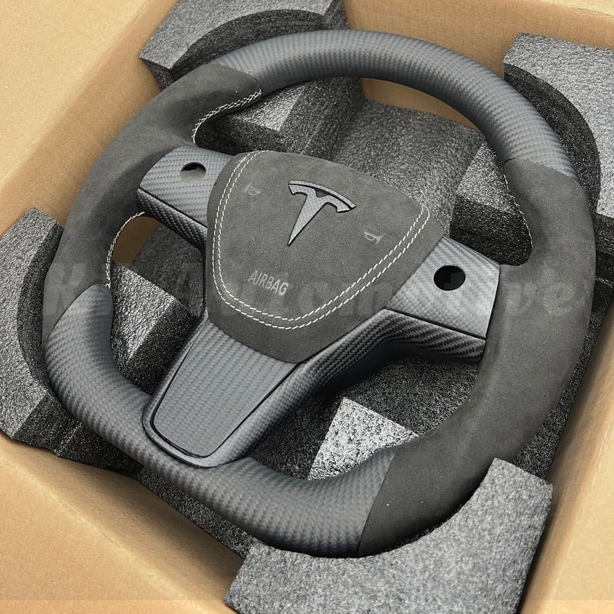 Model Y Matte Carbon Fiber Steering Wheel (Alcantara) - Full Set